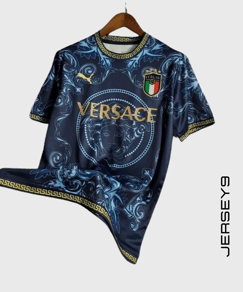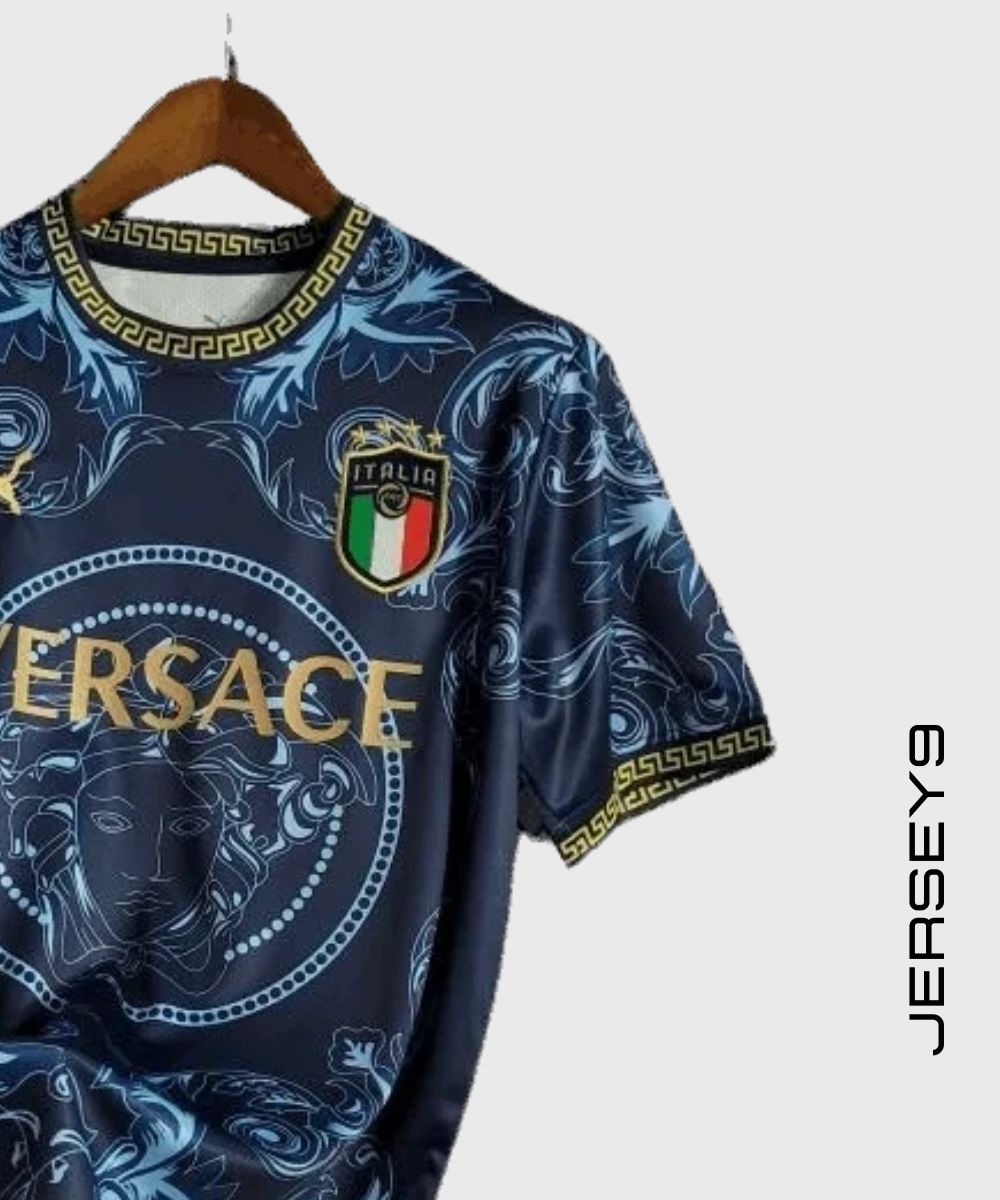 This luxury football jersey is a limited-edition item you don’t want to miss. Get your hands on the 2023 Versace Italy Blue Jersey today from JerseyNine. Show your pride for Italy in the most fashionable way possible.